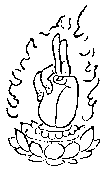 次頻誦真言。各說本真言及自所持明應如是作已。稱名而奉獻。一切先遍置清淨法界心。所謂(前不動劍印)◇[口*覽]字門如前所獻開示稱名中