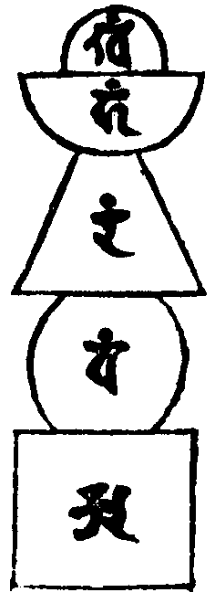 既去有為五蘊四大立無為金剛不壞五蘊。即名無漏智身即無為。曼荼羅地亦然。其曼荼羅五輪加持。名為地水火風空。去有為五大立無為五大。故先觀曼荼羅地相(上)時。先從空起上觀風等如左(圖)