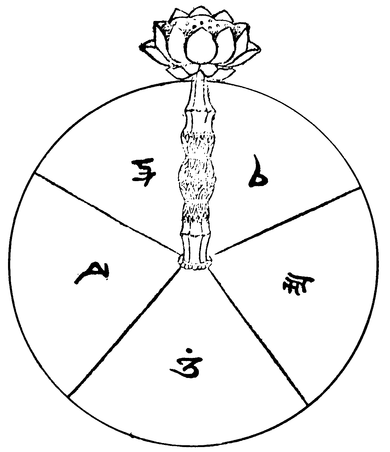 是妙香印名大悲拔苦。所以者何。依燒之次第。而顯真實理。若燒盡時。表若順若逆遂歸空法也。處當觀察。從紇哩(二合)一字。出生唵[口*縛]日羅(二合)達磨等五字。一一字中出生無量字門。一一字門化作一切佛菩薩身。一一化身周遍法界利益眾生。是故行者得無量福。悉地圓滿蒙諸佛加被。是故行者獲現世安穩無諸障礙。如妙蓮華。見者愛惜。轉已得生極樂上品蓮中。其有利根智慧方便。現身見佛。得陀羅尼名。不染世也。所生之處身出妙香。遍十方國。眾生得薰。皆證不退。如是功德不可具說。其香爐蓋上。可雕[口*縛]日羅(二合)達磨字。首加唵字以為五字(可旋順)其蓋中央應立三昧耶形。一鈷杵上安開八葉蓮華是也。如上五字圍繞此三昧耶。三昧耶者是本誓之形也。若見此形作禮專念。即證蓮華性。所以生極樂者更不染世。設交世間。度眾生如蓮華不為諸垢所染也。皆由過去本誓願力故。證此果界也。是故行者立此三昧耶形。應專念之而作是想。是◇文之香煙成此三昧耶形。此形更為本尊形體。表因時本誓。遂為果時形色。是三昧耶義也。燒香之時結本尊契。誦是本真言印之。即得成就。其蓋圖如斯
