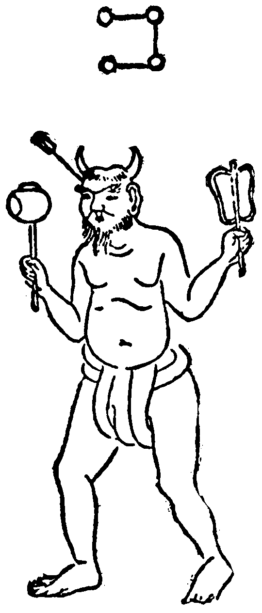 文星直日 鬼名形奉叉 令人後分疼痛如被箭射。不可忍之。起坐不得。是此鬼所為。纔覺即酒火急以酒脯如法祭之。當日便差。如三日外如祭。其病已入四支難療也